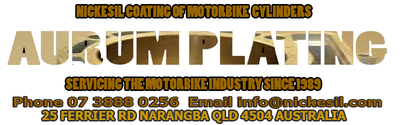 Aurum Plating is an electroplating business situated at Brisbane North and it was created in 1989. After many years of experience in gold plating and electroforming, we have developped in 1990 a nickel composite deposit with excellent wear and hardness suitable to be used as a coating on internal combustion engines four stroke and two stroke.